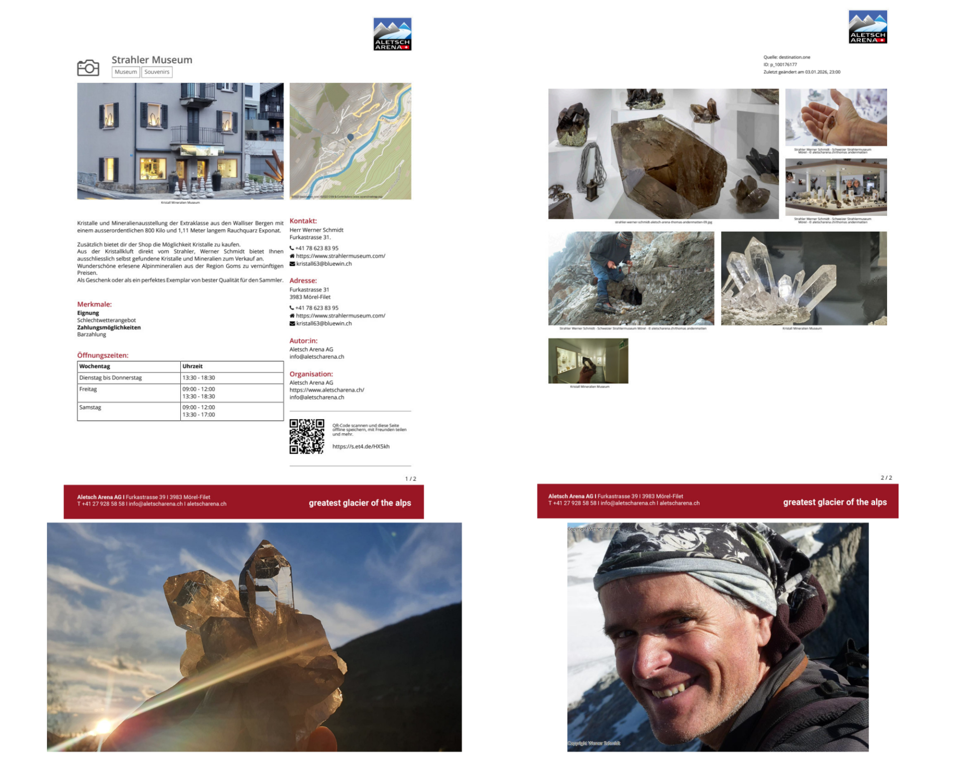 Vom Berufsstrahler Werner Schmidt auf der Suche nach den verborgenen Schätzen in den Walliser Bergen und wie er die Kristalle aus der Kluft ans Licht bringt. Zu sehen ist auch die umfangreiche Ausstellung und die Angebote im Verkaufsladen von einzigartigen Mineralien und Kristalle Exponaten in Mörel - Filet und dessen Räumlichkeiten, in eindrücklichen Bildern.